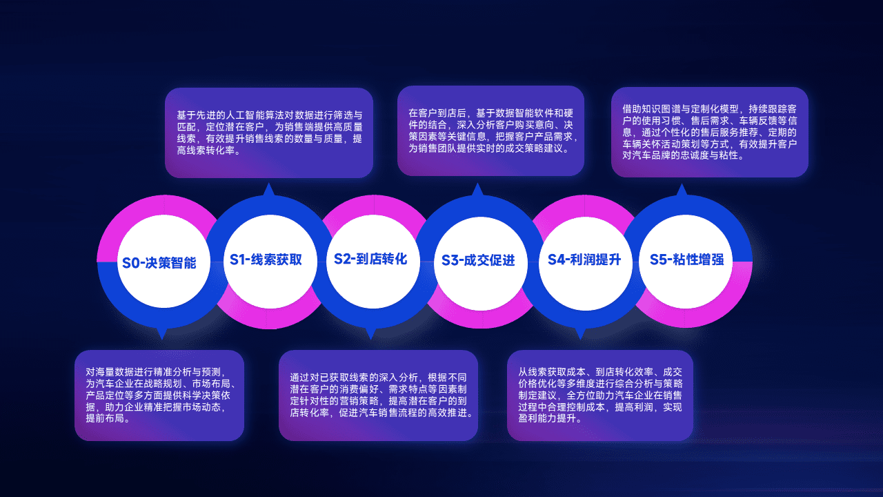 通过拓宽潜在客户来源、、、、优化线索分配并提高到店转化率,,,以增强销售效率。。。。同时,,,利用线索数据不断优化分析模型,,,有效提升转化率,,扩大营销影响力。。。。